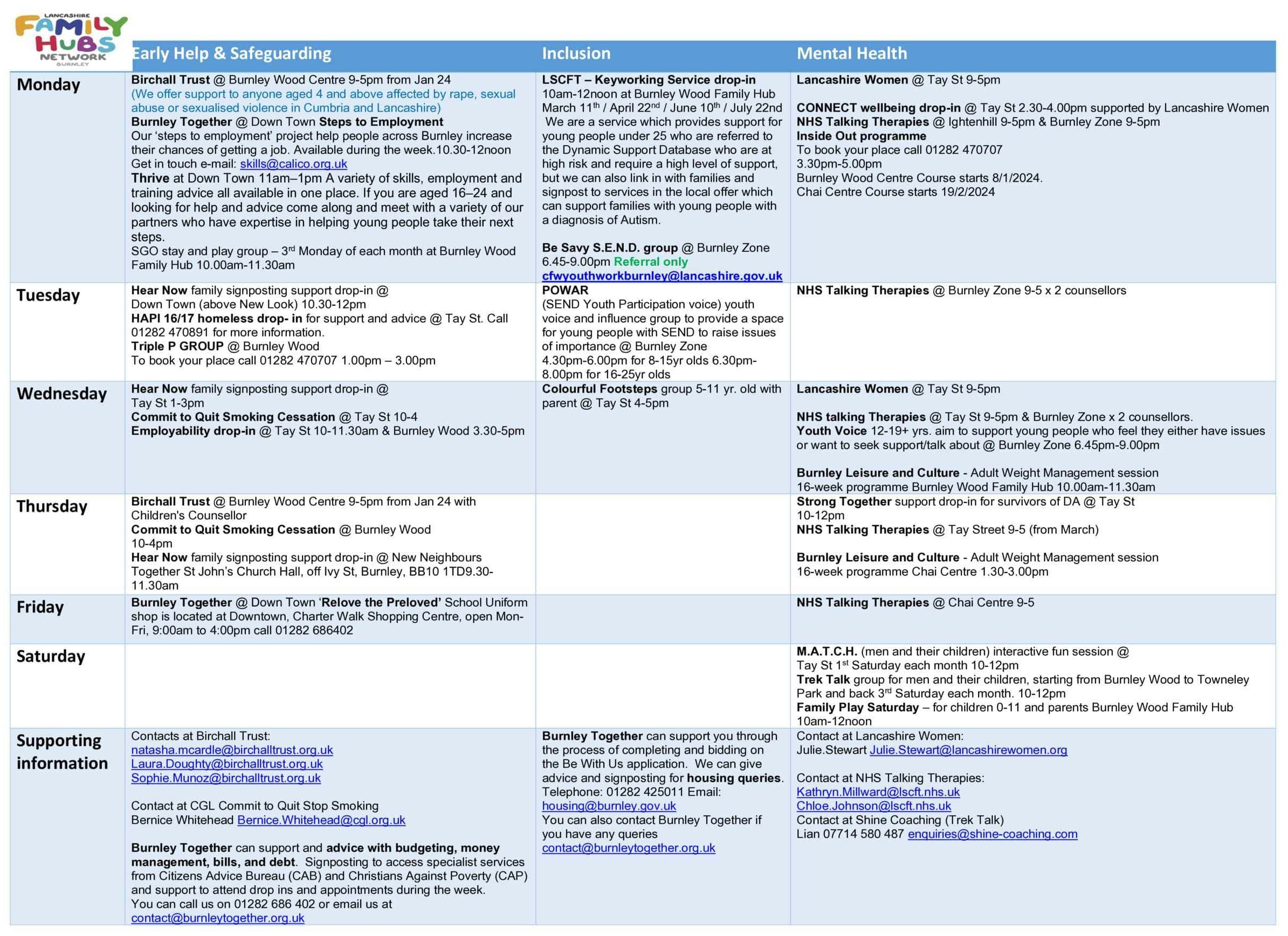 Burnley Tay Street Family Hub (Tay Street Family Hub, 21 Tay Street, BB11 4BU – Tel: 01282 470891)